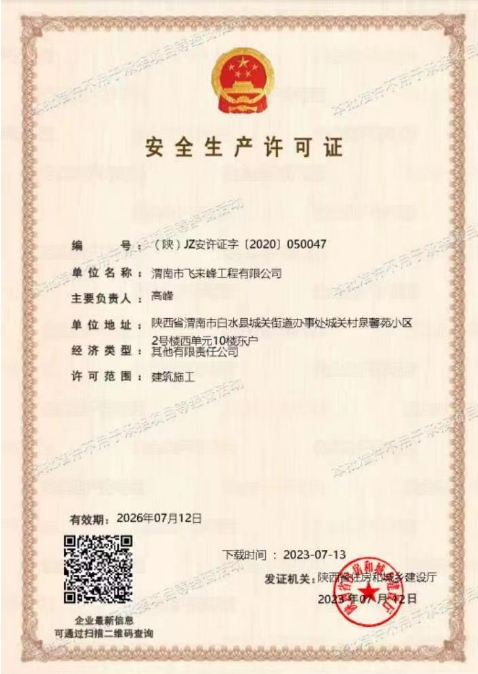 渭南市飛來峰工程有限公司營(yíng)業(yè)執(zhí)照